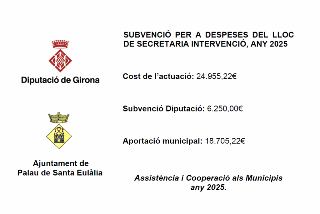 Subvenció Diputació de Girona per a despeses del lloc de secretaria intervenció, any 2025