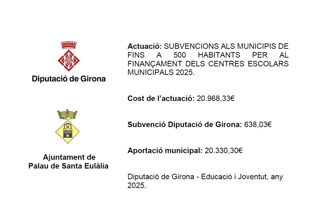 Subvencions als municipis de fins a 500 habitants per al finançament dels centres escolars municipals 2025
