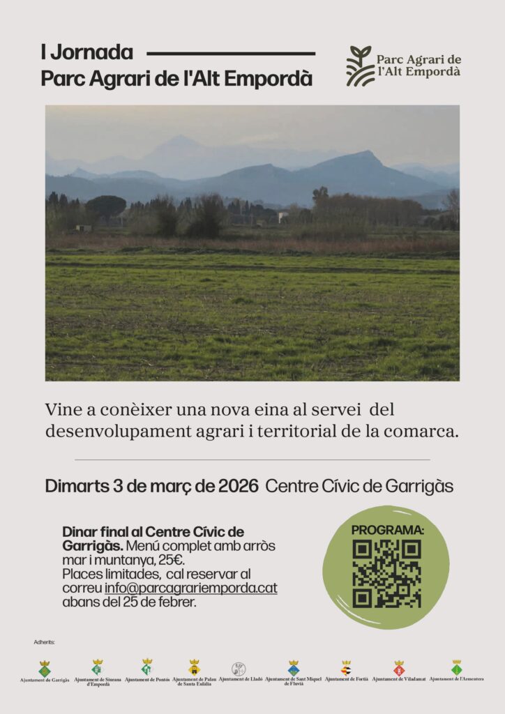 Us presentem el programa de la Jornada tècnica i informativa sobre el Parc Agrari de l’Alt Empordà que s’acaba de constituir i al qual el nostre Ajuntament s’ha adherit. Amb un suport majoritari de la pagesia i de la població podem impulsar i promoure l’agricultura, i creiem que aquest projecte es la millor manera de defensar el territori, i ajudar l’economia local.